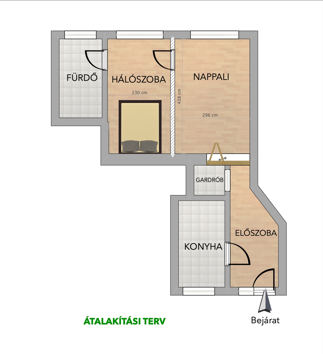 ✅ világos nappali (leválasztható hálószoba)