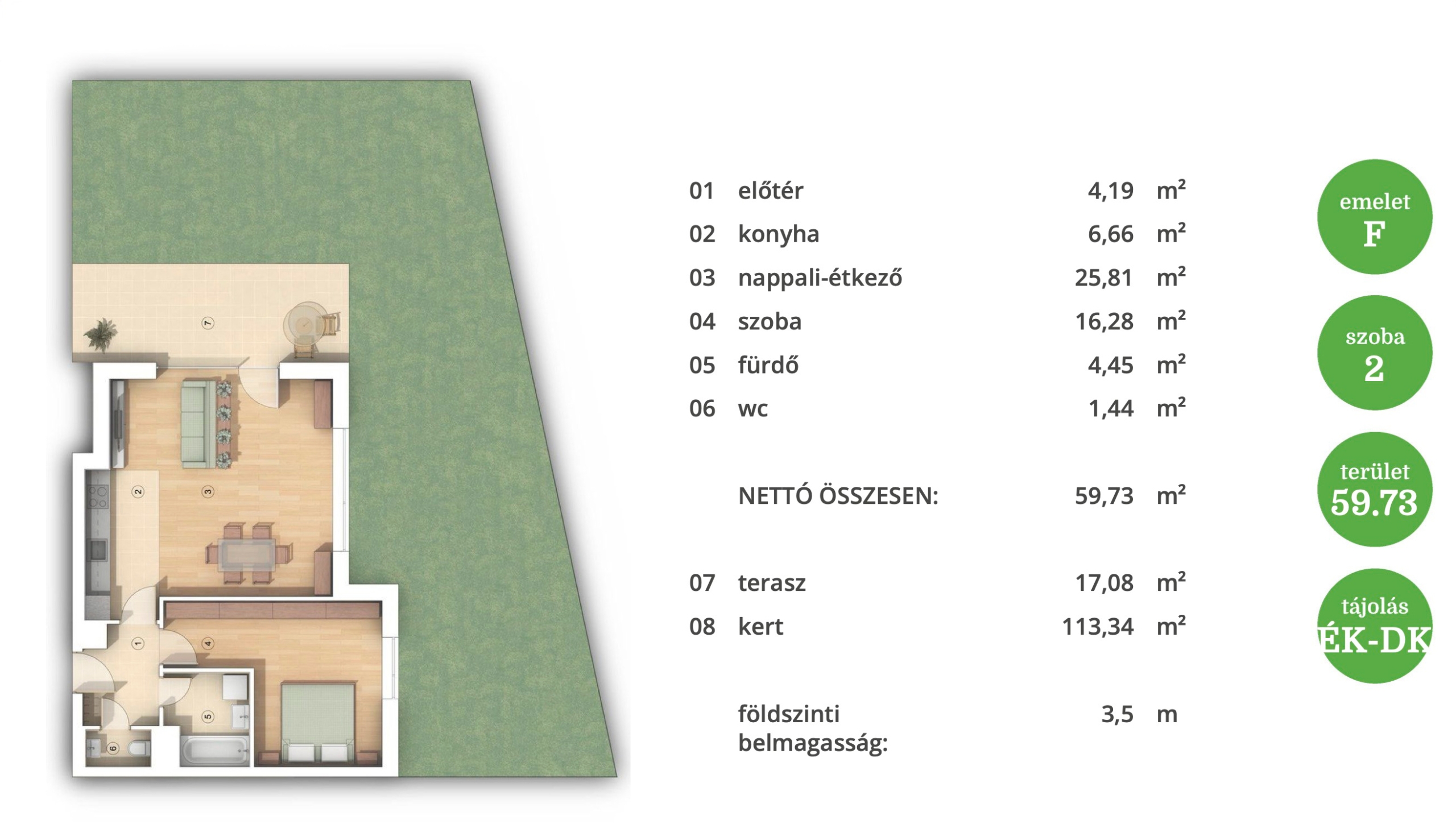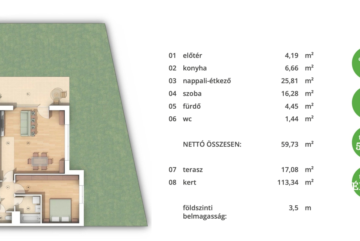 Eladó Zugló csendes részén, a Bartl János utcában egy 2024-ben épült, földszinti, kertkapcsolatos lakás. A lakás nappali + hálós elrendezésű, nagy üvegfelületekkel és 3,5 méteres belmagassággal. A 17 m²-es terasz és a 113 m²-es privát kert jól használható, rendezett külső életteret biztosít. A modern hőszivattyús mennyezeti fűtés–hűtés alacsony fenntartási költséget garantál. Az épület rendezett, liftes, jó közlekedésű környezetben helyezkedik el. A lakás még nem volt lakva.